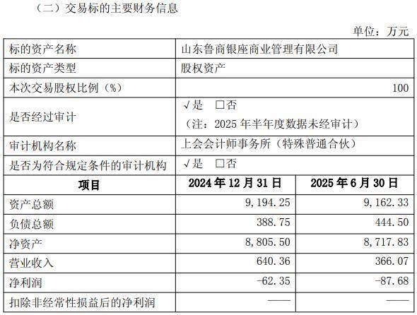 标的银座商管的经营收入主要来源于对集团内部房地产项目进行运营管理,但受国有资本退出房地产板块的政策影响,银座商管近期经营状况并不理想。银座商管2024年净亏损62.35万元。2025年上半年,亏损进一步扩大,净亏损达87.68万元。
